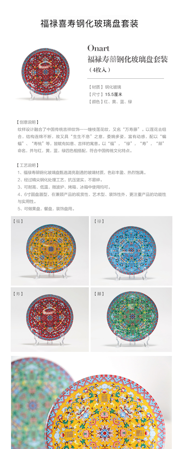 福禄寿禧团寿盘套装