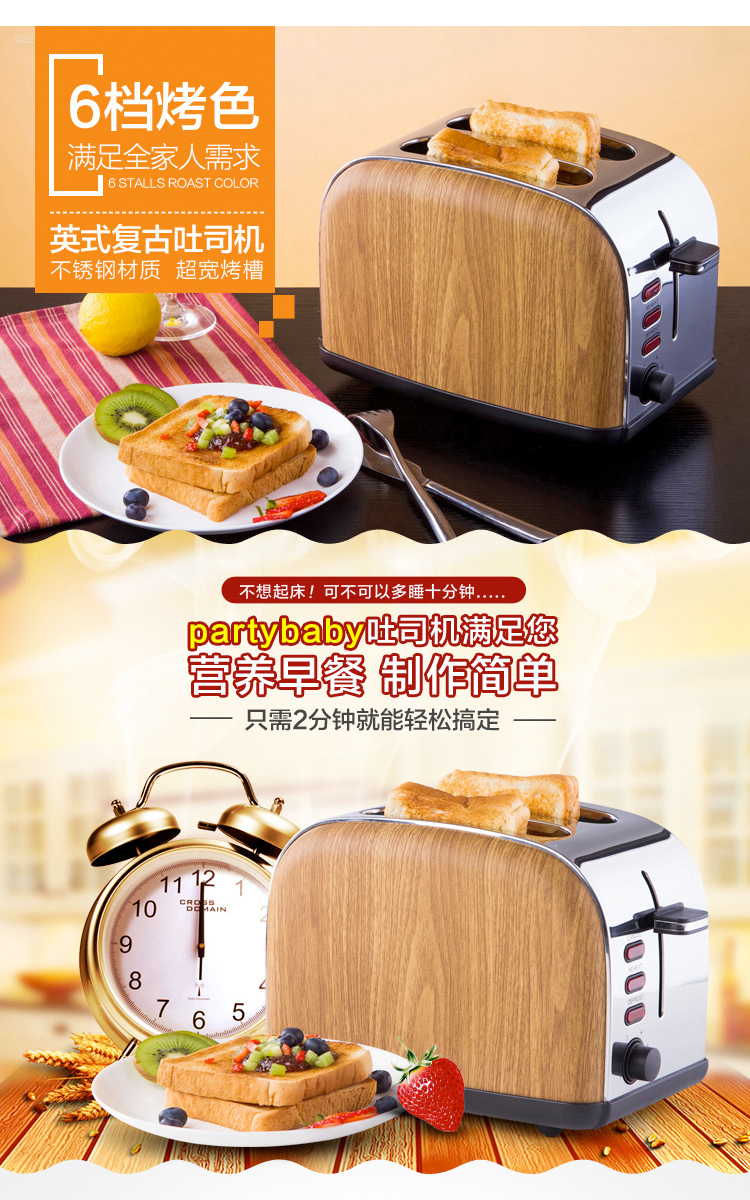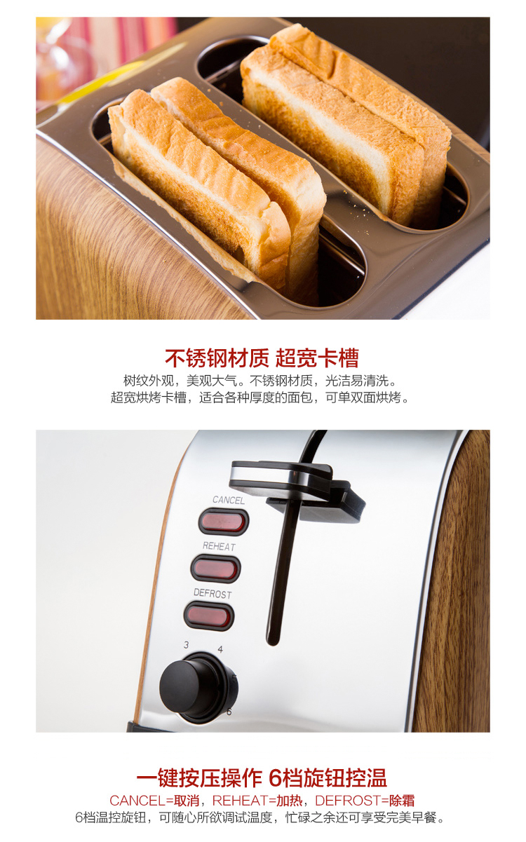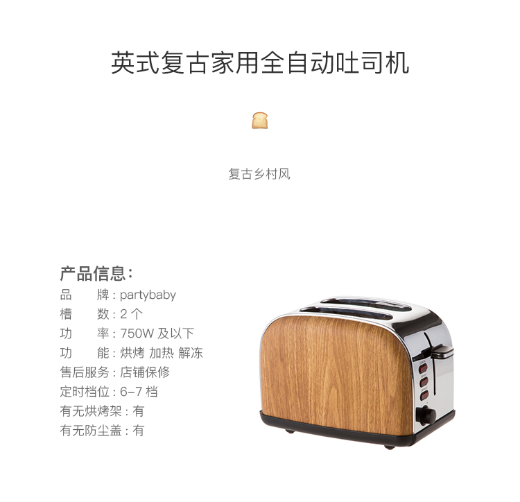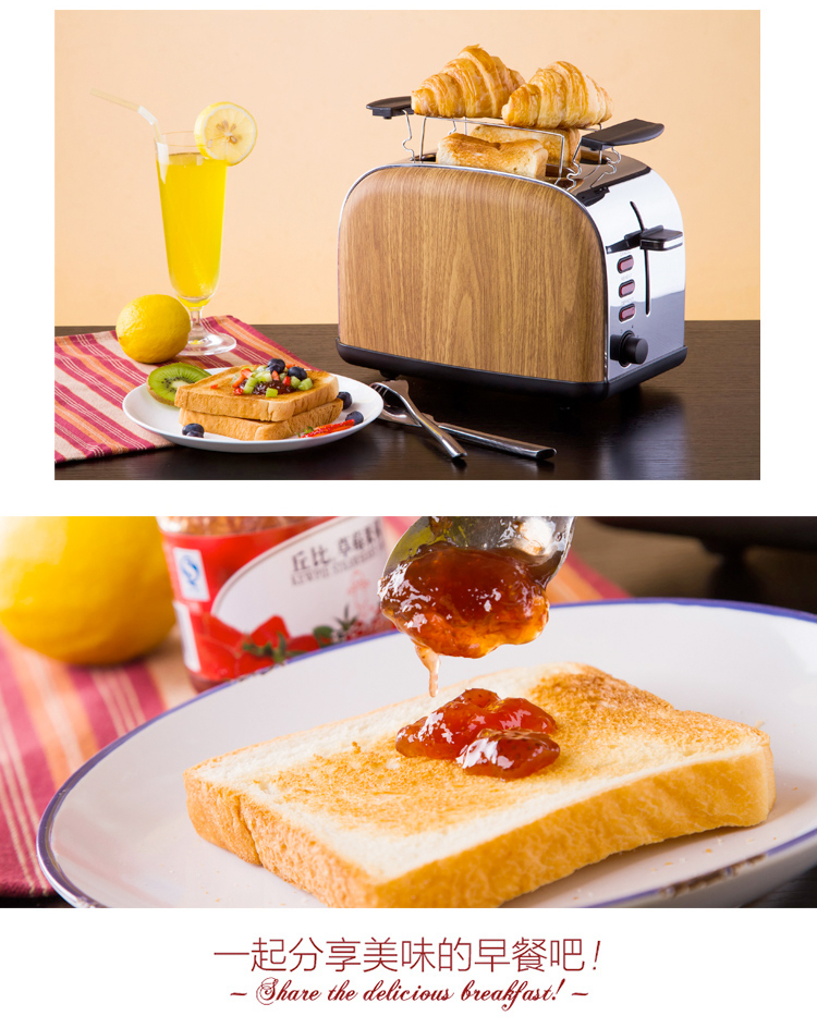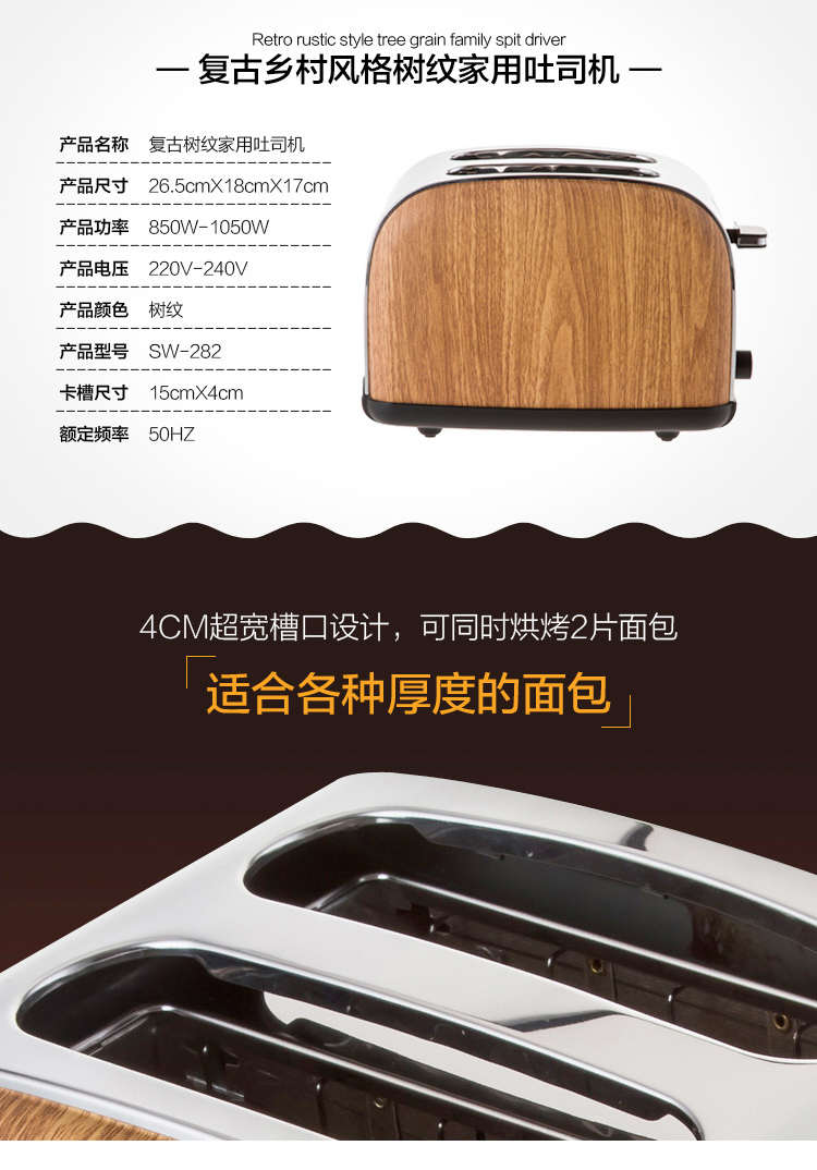 复古乡村风格树纹家用吐司机,6档可选温度,单面/双面烘烤可选